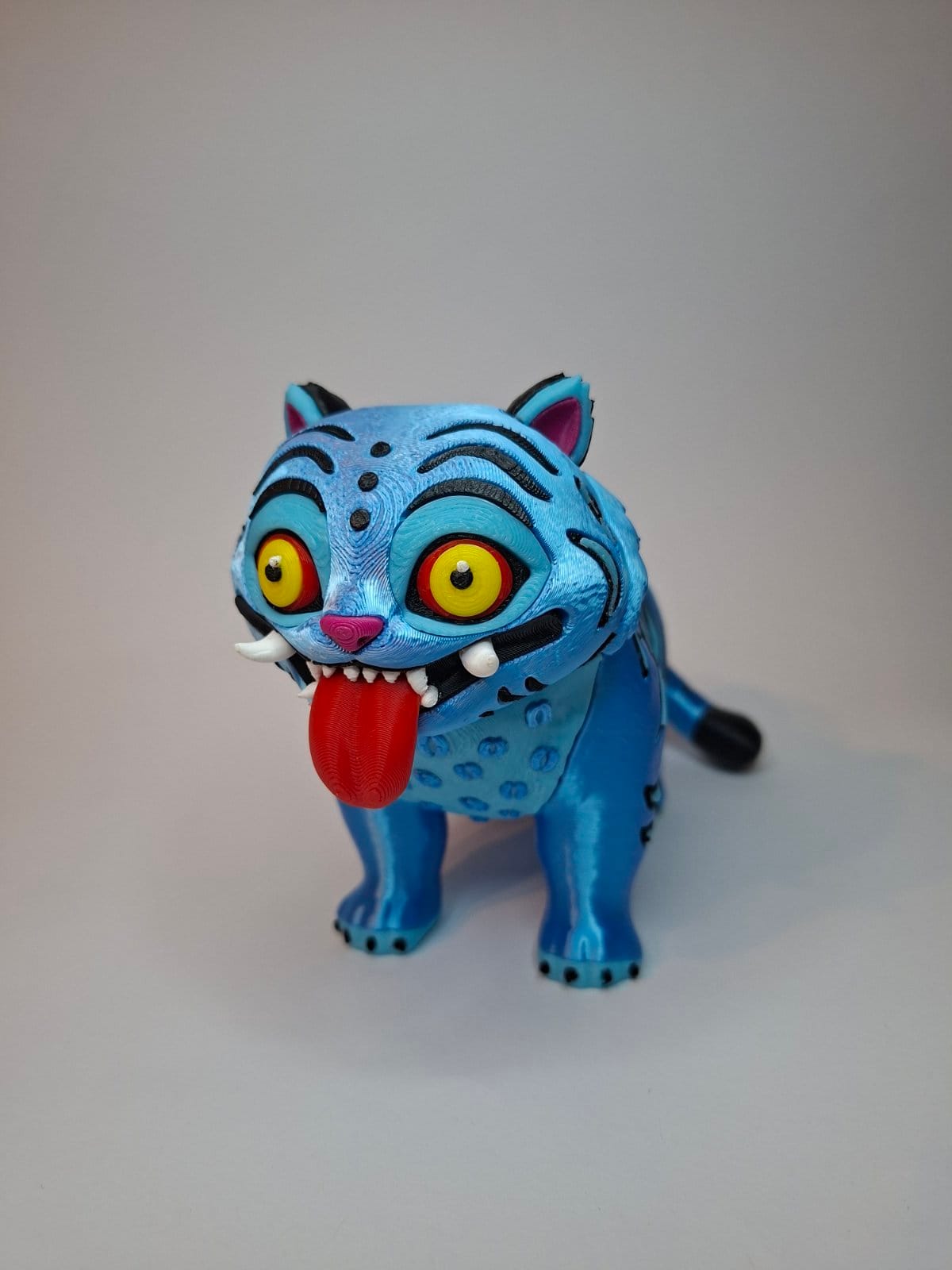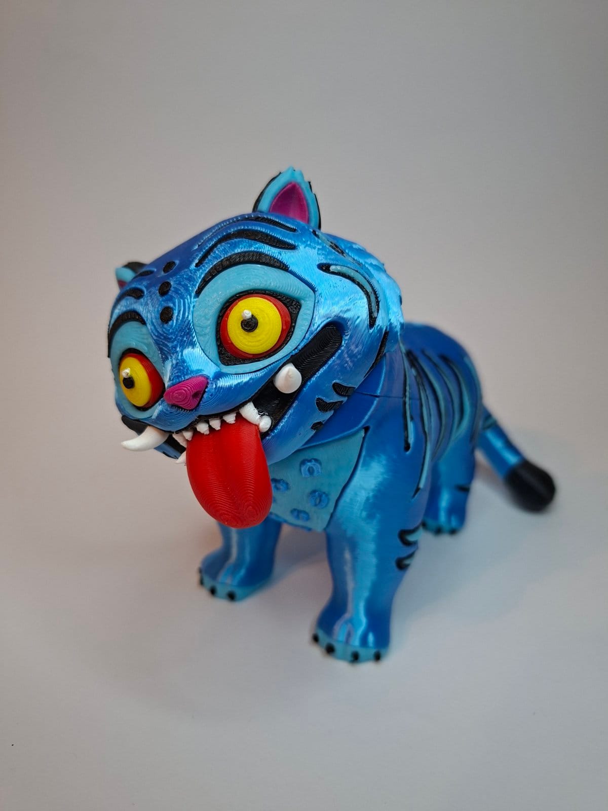 „Derpy Tiiger” on lõbus 3D-prinditud figuur tahtlikult totaka ilmega, suurte silmade ja väljaulatuva keelega. See pole loodud realismi jaoks, vaid emotsioonideks — et tekitada naeratus juba esimesest pilgust.