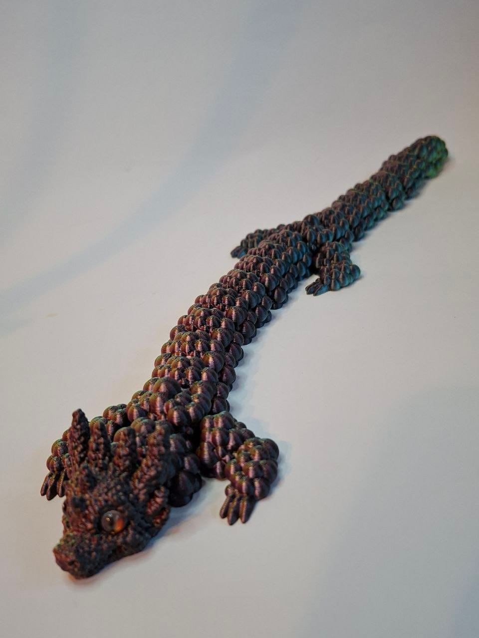 Ümaratel vormidel toimivad FDM-printimise kihid nagu mikroprismad. Valgus murdub iga kihi astmel (kõrgusega vaid 0.16 mm), luues selle ‘siidise’ efekti. Valatud mänguasi oleks lihtsalt läikiv. Prinditud mänguasi särab. Lisaks, tänu soonelisusele, ei libise draakon käest, isegi kui need on erutusest (või teest) niisked.