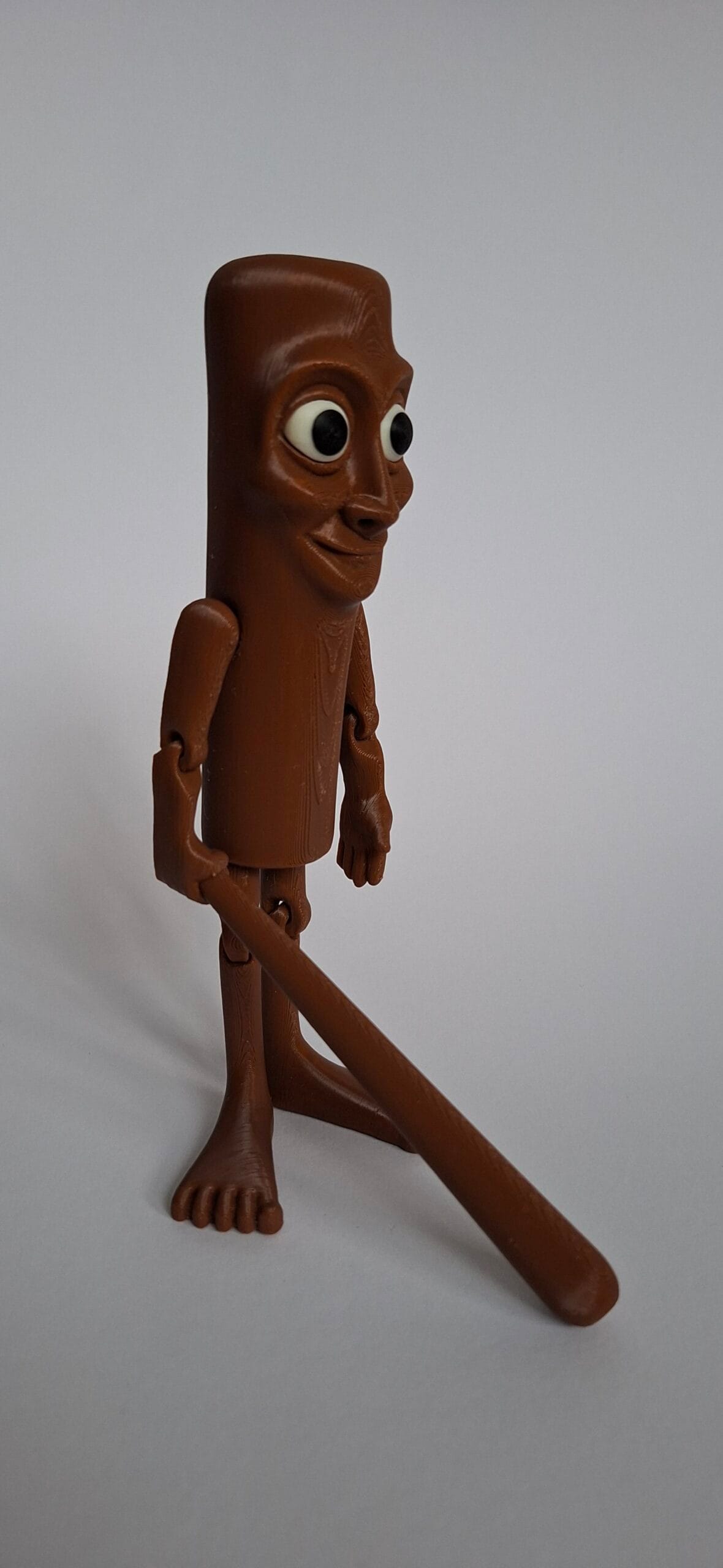 Pruun „puidumustriga” kuju, suured silmad ja kuulus nui – mänguline ja meeldejääv tegelane.
